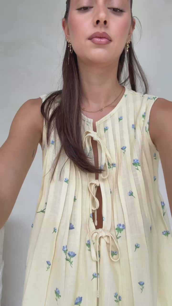 LEMON BELLE FLEUR PLEAT FRONT TIE TOP - MAMA