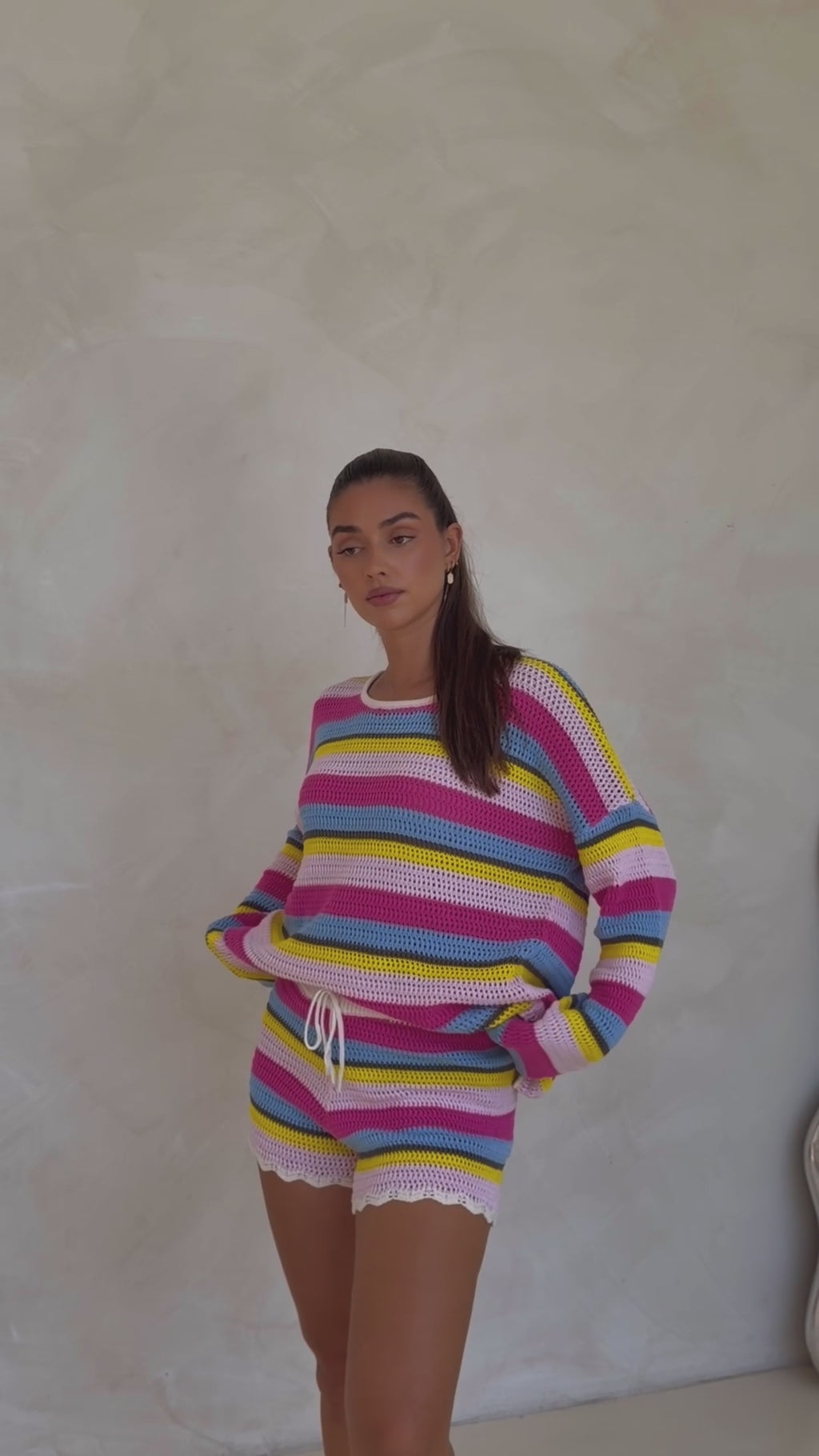 Our best selling  knit now in Havana Stripe - You can now match your mini. This knit is designed for an intentionally oversized fit. A must have in any wardrobe this summer! Throw it over your bikini for the perfect beach look!
