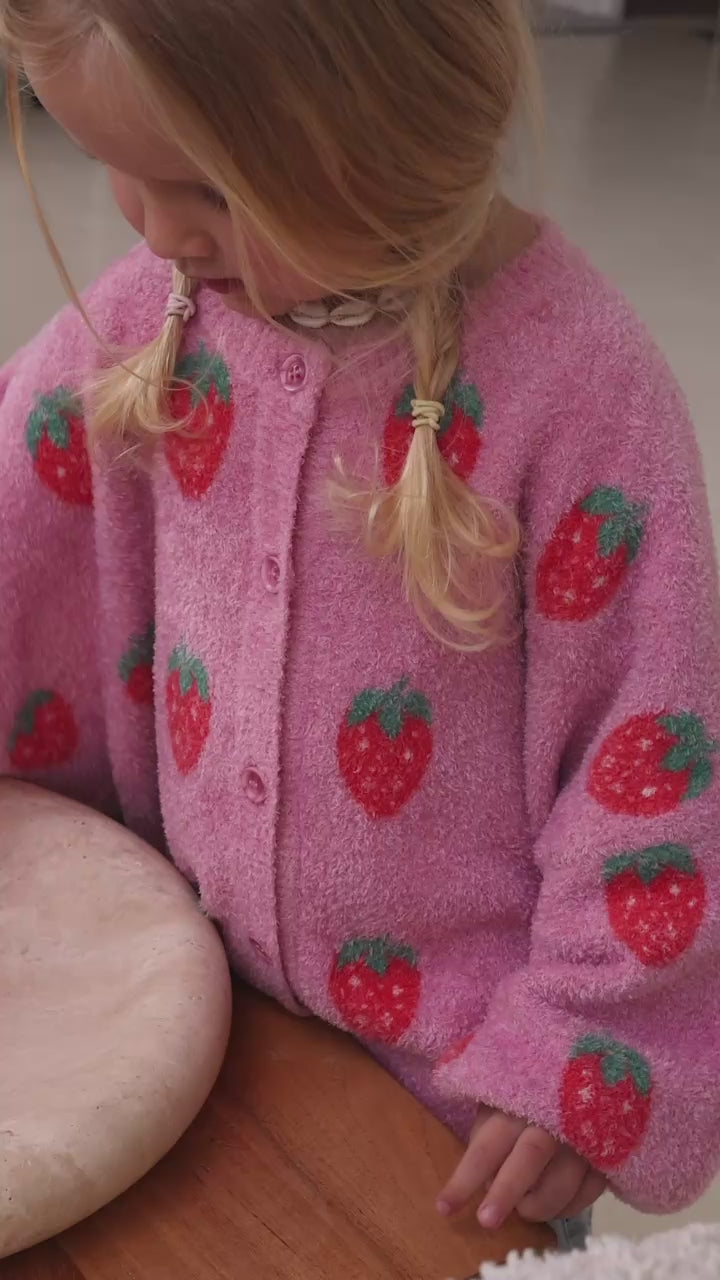 Our gorgeous STRAWBERRY Cardigan is made from the softest WEAVE. It is a oversized fit knit cardigan. It features jacquard strawberries. Perfectly paired with our Yarra Denim.